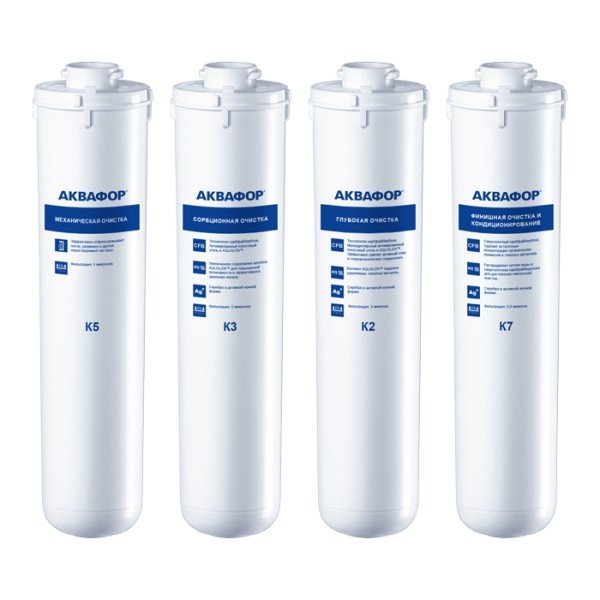• Комплект сменных модулей глубокой очистки. Оптимален для мягкой воды. В условиях жесткой воды он полностью выполняет функцию глубокой очистки от вредных примесей, однако не снижает минерализацию. Поэтому, если при кипячении на нагревательных элементах образуется белый налет, рекомендуем рассмотреть специализированный комплект с умягчающим модулем для глубокой очистки воды.