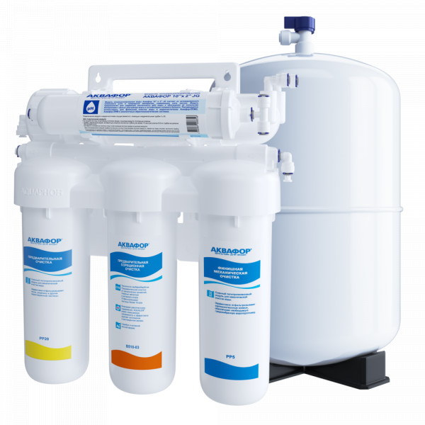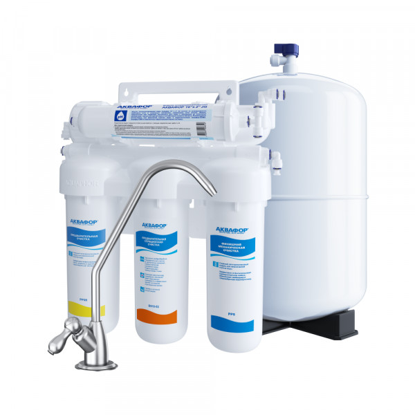 Аквафор Осмо 50 исп. 5 полностью устраняет жесткость — причину накипи, а также все опасные примеси из водопроводной воды, включая бактерии, паразитов и вирусы. Накопительный бак рассчитан на 10 литров, блок кондиционирования в комплекте. Система рекомендована для детского питания.