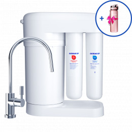 Обратноосмотические фильтры используются для абсолютной защиты от накипи, т.к. полностью устраняют соли жесткости из воды.даЧисло ступеней очисткиКартриджи последовательно очищают воду и от видимых примесей, и от растворенных. Первый картридж задерживает более крупные частицы, а каждый последующий - более мелкие. Чем больше ступеней - тем лучше фильтр очистит воду: поймает более мелкие видимые частицы ржавчины, песка и ила, успеет захватить из воды максимум растворенных примесей - хлора, нитратов, тяжелых металлов и других.4МинерализацияПроисходит после финишной очистки воды. Необходима прежде всего в фильтре обратного осмоса, поскольку такой фильтр полностью устраняет из воды все примеси, в том числе минералы. Минералы добавляются в оптимальной концентрации - для пользы и привычного вкуса воды.даПостфильтрацияФинальный этап очистки воды: картриджи постфильтрации удаляют самые мелкие механические частицы и кондиционируют воду, придавая ей более приятный вкус.даНакопительная емкостьОбычно нужна в фильтрах обратного осмоса. Глубокая фильтрация требует времени. Чтобы Вам не приходилось ждать, пока вода наберется в чайник или кастрюлю, почти во всех моделях используется накопительный бак для чистой воды или другая емкость. В стандартном фильтре обратного осмоса под мойку воды в баке достаточно для семьи из 5-6 человек.даФильтрующий модуль в комплектедаОтдельный крандаДавление в водопроводе не более, атмМаксимальное давление воды на входе в систему, при котором возможна стабильная работа фильтра.6,5Ширина, смОбратите внимание на габариты фильтра, и измерьте, сколько свободного пространства в предполагаемом месте установки.37,1Глубина, смОбратите внимание на габариты фильтра, и измерьте, сколько свободного пространства в предполагаемом месте установки.19,0Защита корпуса от гидроударовдаИсходная водаЖесткая вода – вода с избытком минеральных солей. От нее появляется накипь в чайнике, известковый налет на сантехнике и разводы на посуде. Мягкая вода – та, в которой мало минеральных солей. Нет накипи в чайнике и разводов на посуде. Фильтры для мутной воды и фильтры от ржавчины, как правило, имеют несколько стадий очистки и дополнительный полипропиленовый картридж. Он задерживает механические частицы ила, песка и ржавчины и защищает картриджи более глубокой очистки.любаяУстраняет мутностьМутность водопроводной воды может говорить о том, что в ней много мелких механических частиц. Важно, чтобы в фильтре был установлен дополнительные картридж механической предфильтрации (полипропиленовый) - он продлит жизнь остальным картриджам более тонкой очистки.даУстраняет ржавчину, бурый осадокЛюбой фильтр под мойку удалит из воды крупные и мелкие частицы ржавчины. Некоторые фильтры имеют повышенный ресурс по железу: они дольше служат в такой воде, поскольку лучше подходят для удаления из воды железа и механических частиц ржавчины.даЗащита от бактерийВсе проточные фильтры в той или иной степени защищают от бактерий. Например, добавление серебра препятствует их размножению. Это стандартная степень защиты. Если в семье есть дети, пожилые люди или аллергики, воду рекомендуется обеззараживать, то есть полностью удалять микроорганизмы. Повышенную защиту от бактерий дают фильтры с половолоконной мембраной. Это пучок трубок с по
